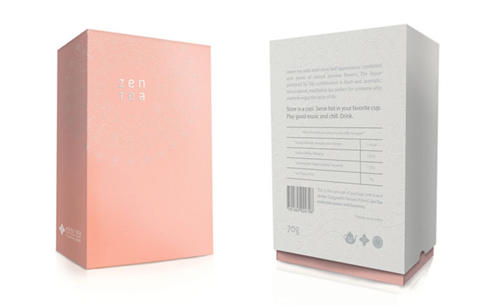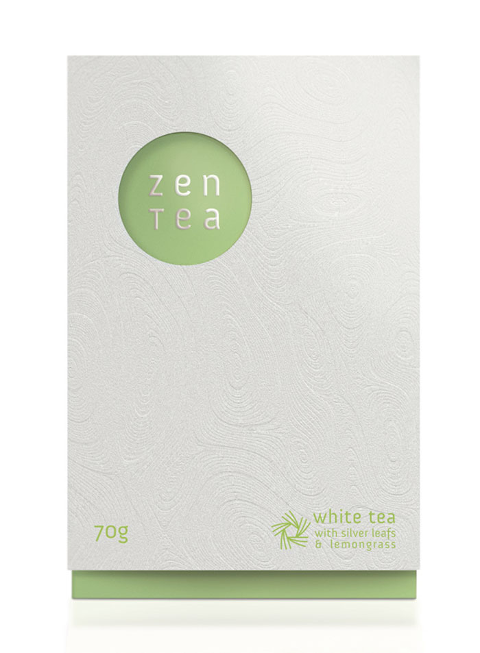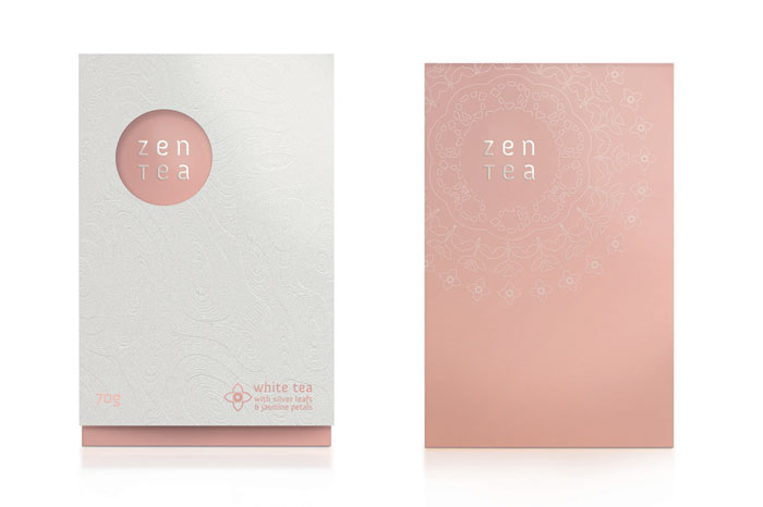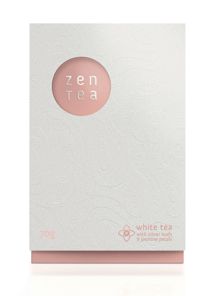看看這美麗的茶包裝。我們喜歡在外套筒上的一個(gè)禪宗花園的微妙質(zhì)地。一旦撕開(kāi)它,你看到一個(gè)散熱墊模式從標(biāo)志類型。色彩柔和的調(diào)色板反映了設(shè)計(jì)師想要傳達(dá)的寧?kù)o。