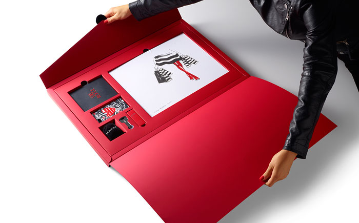 在前面的每一個(gè)圓滑,黑色,16“x24”信封,是收件人的姓名寫(xiě)在紅色的書(shū)法。內(nèi)部是大量柔軟的胭脂紅,每按試劑盒項(xiàng)目很好地存放在自定義威爾斯。包括一個(gè)VIB胭脂歡迎包,一個(gè)全尺寸的咬唇膏在自定義胭脂紅色燈罩,絲芙蘭品牌iPhone案件和耳機(jī),和限量版編號(hào)的版畫(huà)藝術(shù)家路維薩·布菲特簽署。新聞稿本身被加載到一個(gè)光滑的黑色USB驅(qū)動(dòng)器在一個(gè)關(guān)鍵的形狀。從絲芙蘭個(gè)人歡迎信放在上面。”